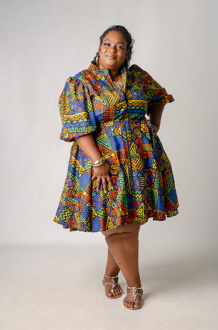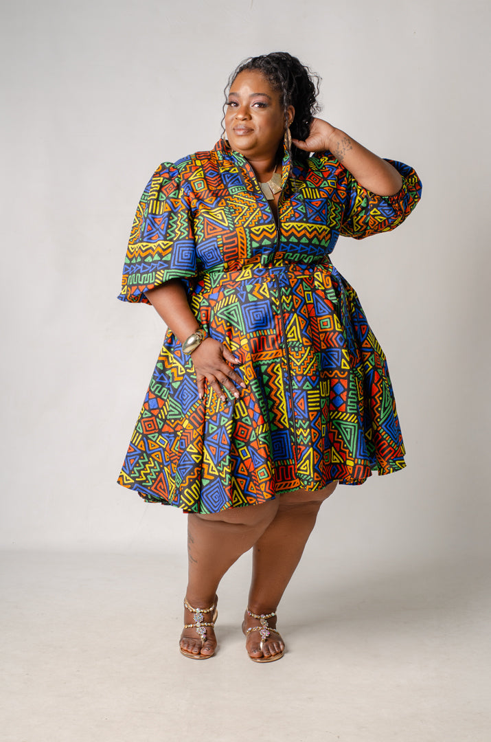 Zuri is a beautifully designed fit-and-flare dress that is perfect for any occasion. The puffed half sleeves and band collar introduce a touch of drama to the overall aesthetic. An attached sash allows you to cinch the waist at the front or back, providing versatility in styling. Additionally, the long zipper ensures easy entry, while also offering the flexibility to adjust the coverage at the bodice according to your preference.