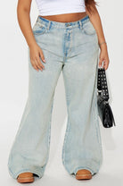 The Cloud Wash Wide Leg Jeans are the pair you have been looking for. This light wash denim features a relaxed baggy fit that sits high on the waist and falls into a dramatic wide leg silhouette that elongates and flatters beautifully. The subtle acid wash fade gives them that perfectly worn in feel without looking overdone. Classic, versatile and built to go with everything in your wardrobe, these are the jeans you reach for every single time.