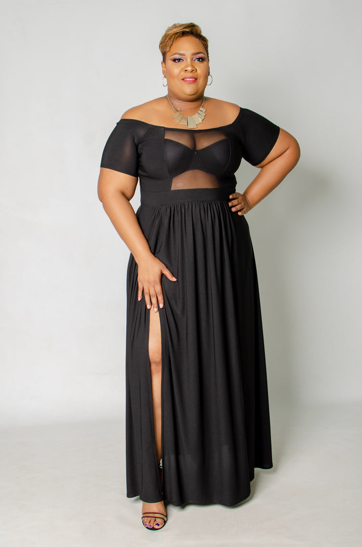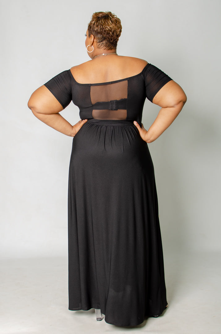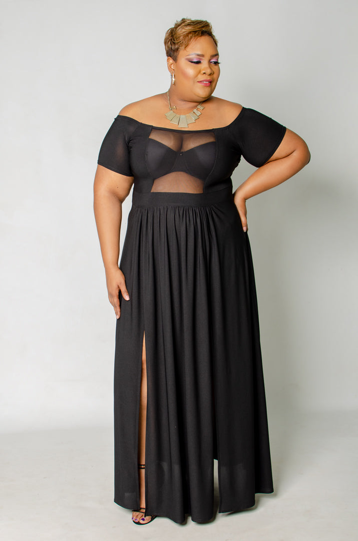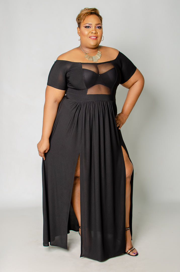 Details: Duo Fabric Double Slit Maxi Dress, Mesh panel in front and back, No Closures