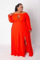 Elara is a show-stopping blend of comfort and glamour, designed to make you feel effortlessly confident. This full-length maxi dress features a sultry off-the-shoulder neckline that beautifully frames the décolletage, paired with a chic keyhole detail for a touch of intrigue. A waist-defining sash ties the look together, accentuating your silhouette before flowing into a dramatic floor-length skirt.