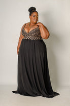 Grace meets glamour in the Lune Maxi Dress. This stunning gown captures timeless elegance with its intricate gold and black lace bodice and soft, flowing skirt that moves beautifully with every step. The surplice neckline adds a touch of allure, while thin straps and a gathered waist create a flattering, feminine shape. Crafted from a stretchy, comfortable fabric and finished with a zipper back, the Lune Maxi Dress is perfect for evenings that call for understated sophistication.