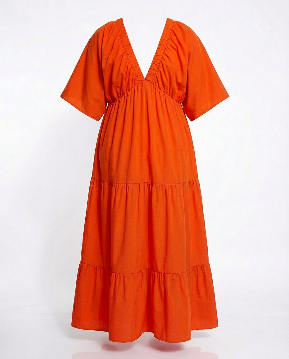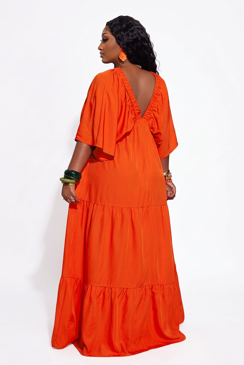 Meet your new favorite everything dress. The Sunkissed Tiered Maxi Dress is giving vacation energy, goddess vibes, and effortless style all in one. This bold burnt orange beauty was made to be seen - whether you're strolling the boardwalk, brunching with the girls, or soaking up golden hour.