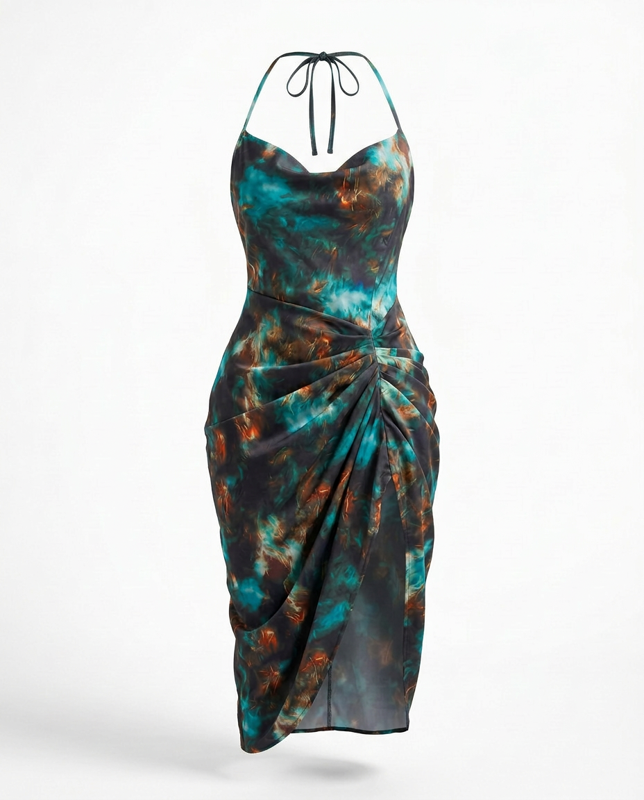 The That Girl Cosmic Midi Dress is your go-to for turning heads without saying a word. Featuring a dreamy cosmic tie-dye print in deep teal, bronze, and charcoal, this dress was made for the girl who moves different.